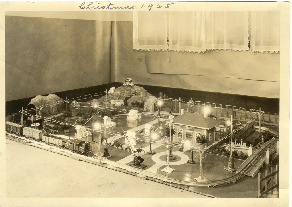 For Christmas 2021, Erie News Now, John Last premiered his ‘Last Word’ episode on ‘Trains at Christmas’. He filmed at the Lakeshore Model Railroad Association prior to our open house last week. I like John and the interview he had with each one of us. I mentioned my Dad’s O gauge layout when Dad would have been ten years old. The picture below is exactly as I remember when he and Grandpa set up for me – I think when I was six in 1962. It was at my grandparents’ home until the house was sold in 1972. About 1969 I started an HO gauge railroad at my parents’ home and have been modeling in HO and recently N gauge too.