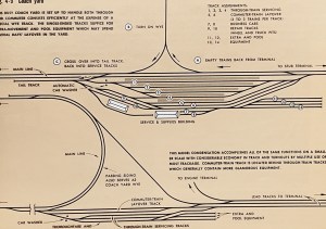 The Northern Division, Erie Main at Warren, PA, as described in my Chief Dispatcher SOQ, that will be the source document for my build. I plan to take the track plan above, lengthen it, eliminate the grade to the upper level, mirror the yard on the other side. To it add a John Armstrong coach yard wye, see the bottom example in this image from one of his books. But instead of a coach yard pictured, on my layout there will be two staging yards.